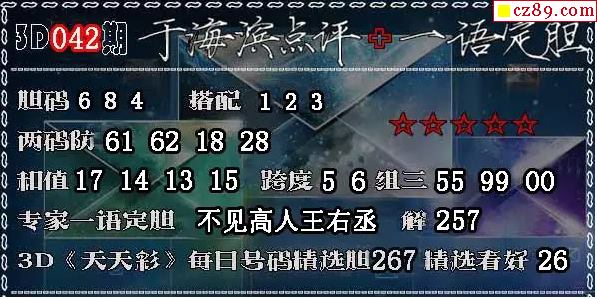 3D《天天彩》每日号码精选胆267精选看好26